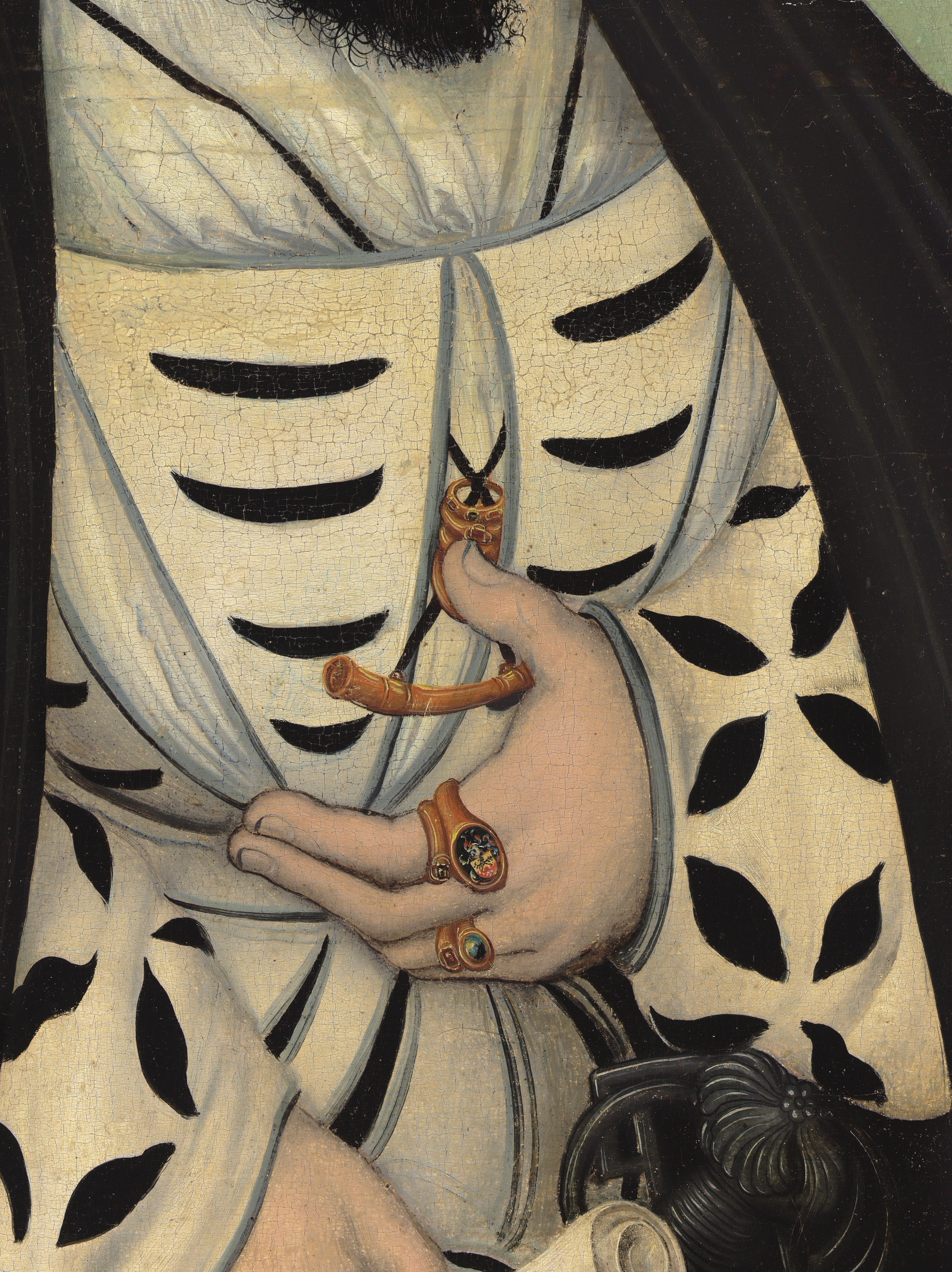 vergrößert die Hand mit dem Wappenring (zum Wappen siehe